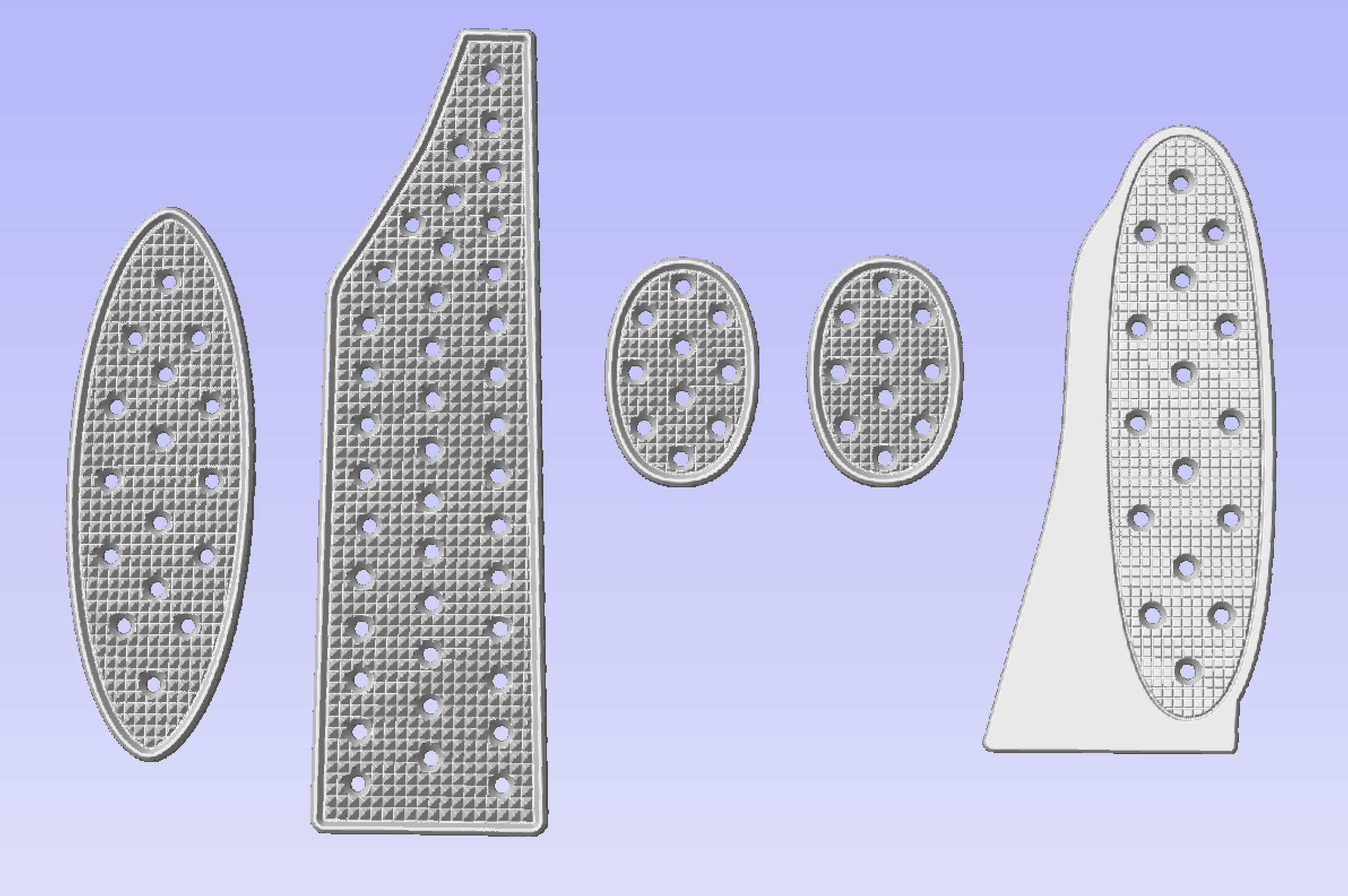 Choice of small or large footrest. The small footrest fits in the oval on the factory plastic footrest, the large footrest covers the entire plastic factory footrest.